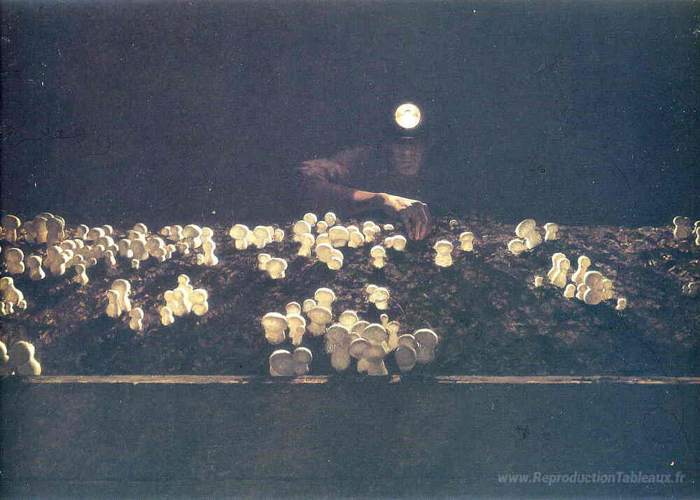 Nous vous proposons une reproduction artisanale sur toile du célèbre tableau 'Cueilleur de champignons' de Jamie Wyeth, provenant du Musée de la Reproduction.