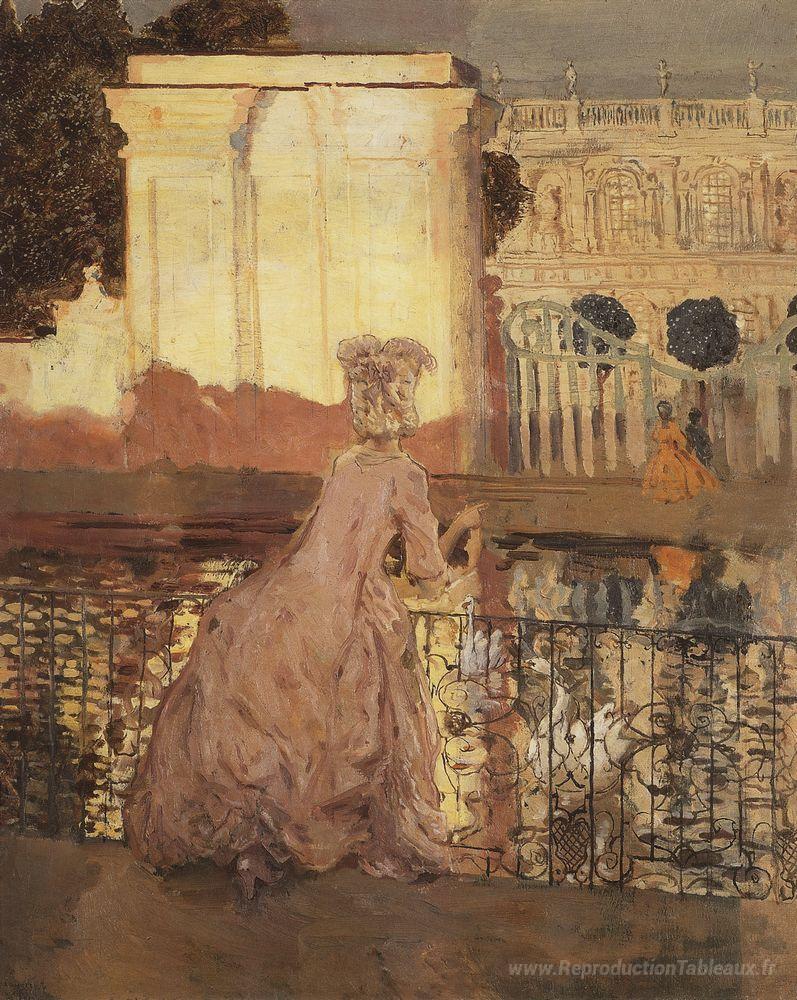 Nous vous proposons une reproduction artisanale sur toile du célèbre tableau 'Dame au bord de la piscine' de Konstantin Somov, provenant du Musée de la Reproduction.