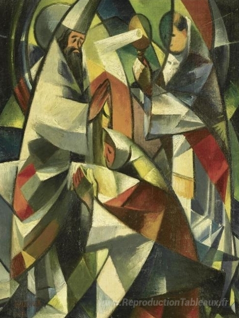 Nous vous proposons une reproduction artisanale sur toile du célèbre tableau 'Dans l'église' de David Burliuk, provenant du Musée de la Reproduction.