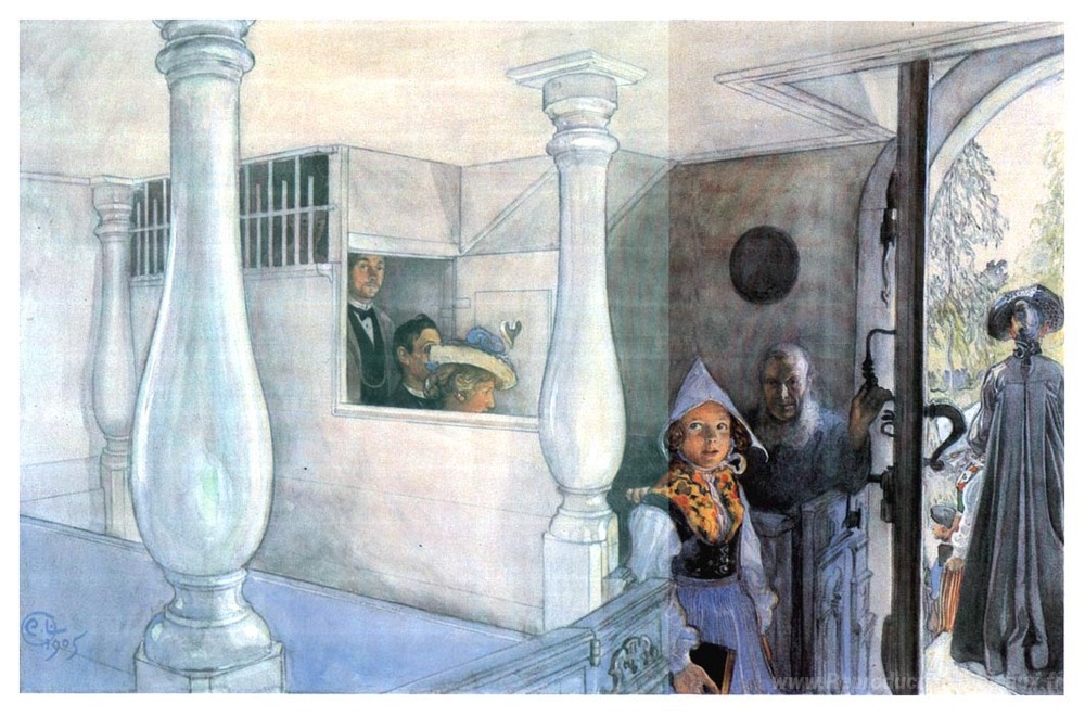 Nous vous proposons une reproduction artisanale sur toile du célèbre tableau 'Dans l'église Sundborn' de Carl Larsson, provenant du Musée de la Reproduction.