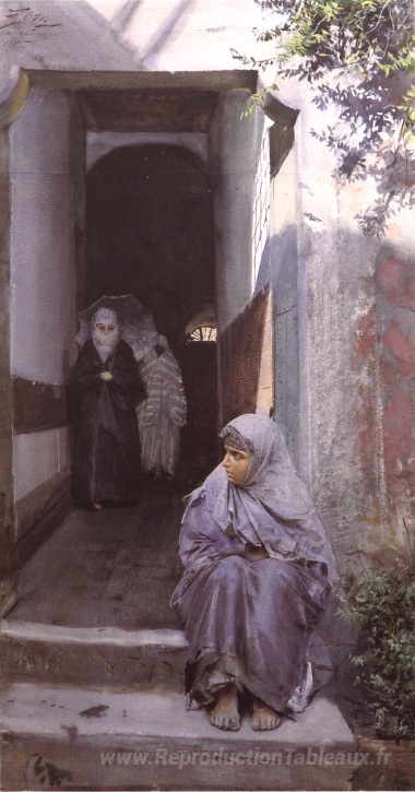 Nous vous proposons une reproduction artisanale sur toile du célèbre tableau 'Dans le haut capu' de Anders Zorn, provenant du Musée de la Reproduction.