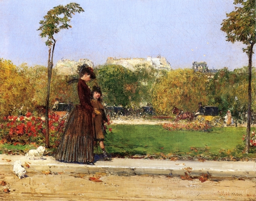Nous vous proposons une reproduction artisanale sur toile du célèbre tableau 'Dans le parc, Paris' de William Merritt Chase, provenant du Musée de la Reproduction.
