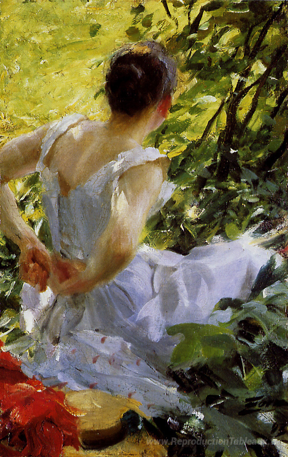 Nous vous proposons une reproduction artisanale sur toile du célèbre tableau 'Dans les bois' de Anders Zorn, provenant du Musée de la Reproduction.