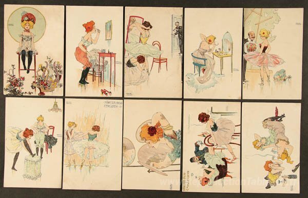 Nous vous proposons une reproduction artisanale sur toile du célèbre tableau 'Dans les coulisses' de Raphael Kirchner, provenant du Musée de la Reproduction.