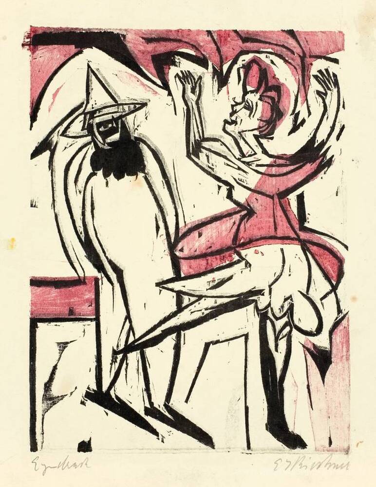 Nous vous proposons une reproduction artisanale sur toile du célèbre tableau 'Danse' de Ernst Ludwig Kirchner, provenant du Musée de la Reproduction.