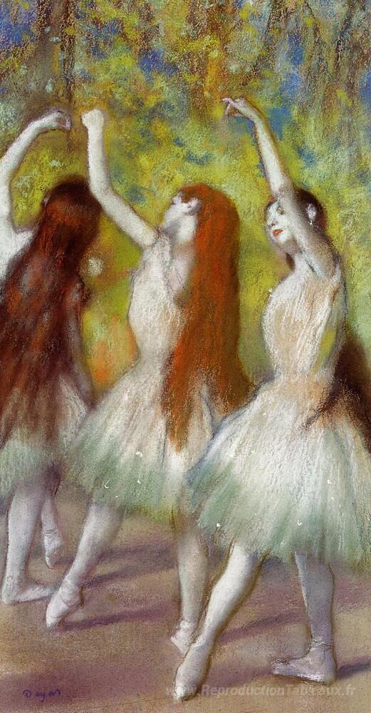 Nous vous proposons une reproduction artisanale sur toile du célèbre tableau 'Danseurs en vert' de Edgar Degas, provenant du Musée de la Reproduction.