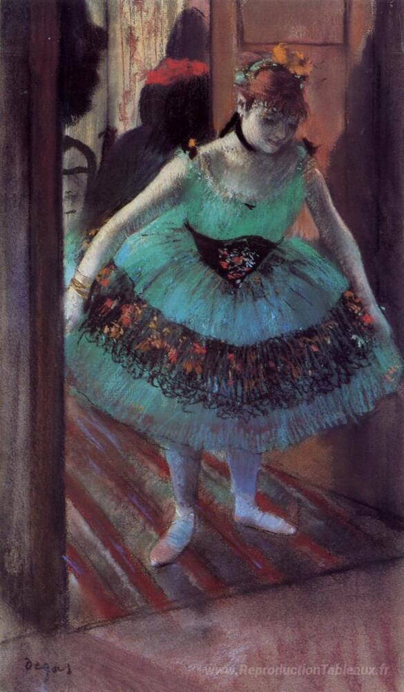 Nous vous proposons une reproduction artisanale sur toile du célèbre tableau 'Danseuse quittant son dressing' de Edgar Degas, provenant du Musée de la Reproduction.