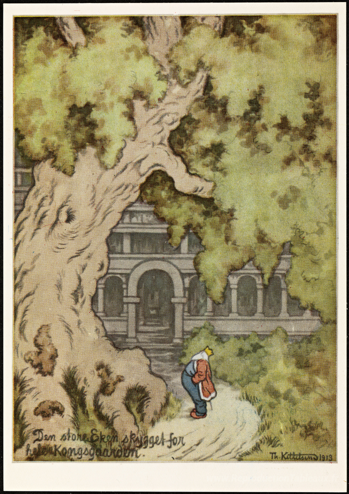Nous vous proposons une reproduction artisanale sur toile du célèbre tableau 'Den Store Eken Skygget pour Kongsgården' de Theodor Severin Kittelsen, provenant du Musée de la Reproduction.