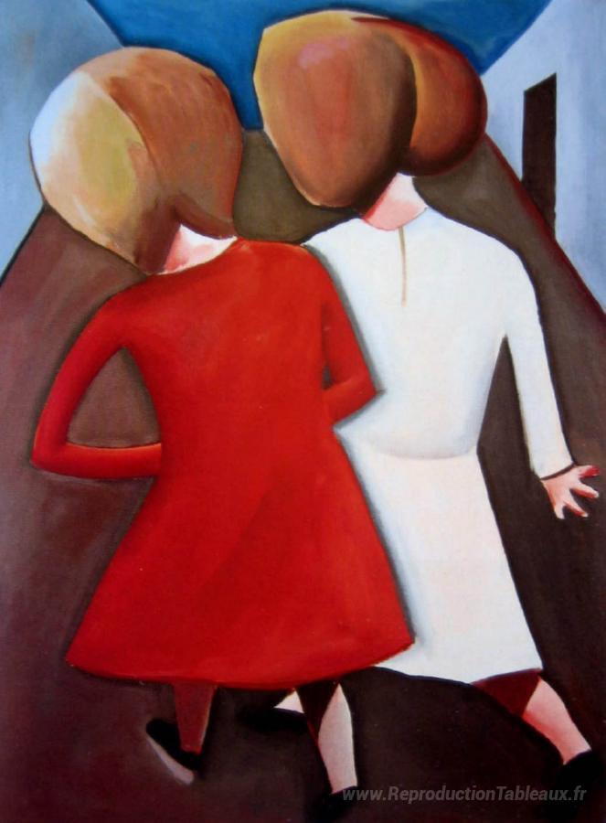 Nous vous proposons une reproduction artisanale sur toile du célèbre tableau 'Deux amis' de Charles Blackman, provenant du Musée de la Reproduction.