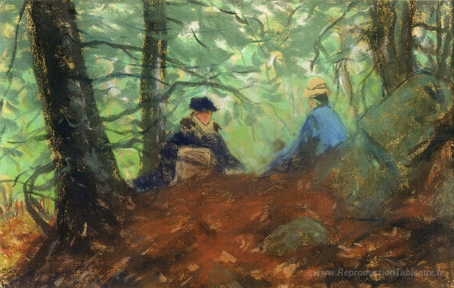 Nous vous proposons une reproduction artisanale sur toile du célèbre tableau 'Deux filles dans les bois' de Robert Henri, provenant du Musée de la Reproduction.
