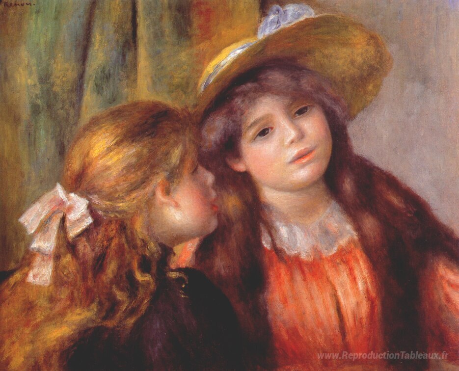 Nous vous proposons une reproduction artisanale sur toile du célèbre tableau 'Deux filles' de Pierre-Auguste Renoir, provenant du Musée de la Reproduction.