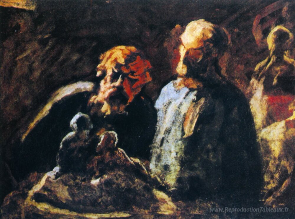 Nous vous proposons une reproduction artisanale sur toile du célèbre tableau 'Deux sculpteurs' de Honore Daumier, provenant du Musée de la Reproduction.