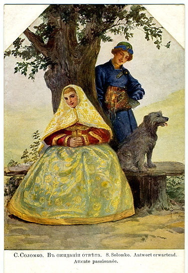 Nous vous proposons une reproduction artisanale sur toile du célèbre tableau 'En attente de réponse' de Sergey Solomko, provenant du Musée de la Reproduction.