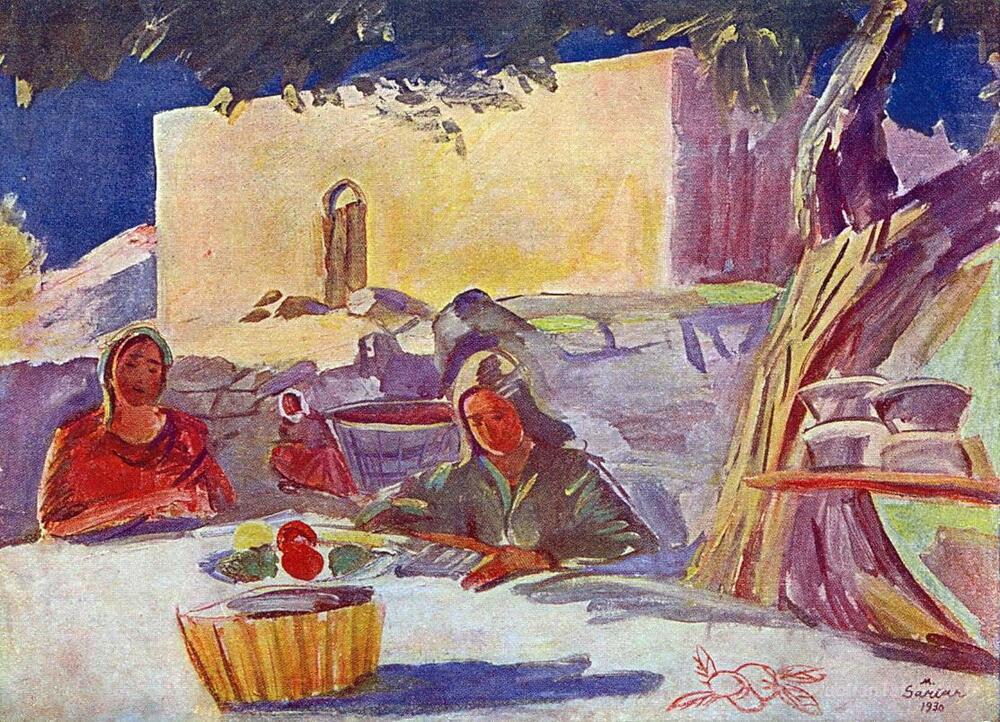 Nous vous proposons une reproduction artisanale sur toile du célèbre tableau 'En temps de loisir' de Martiros Saryan, provenant du Musée de la Reproduction.