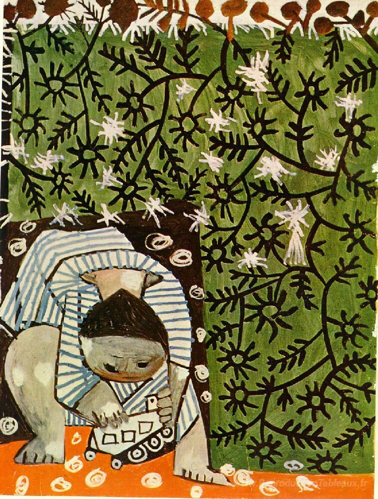 Nous vous proposons une reproduction artisanale sur toile du célèbre tableau 'Enfant jouant à Camomilles' de Pablo Picasso, provenant du Musée de la Reproduction.