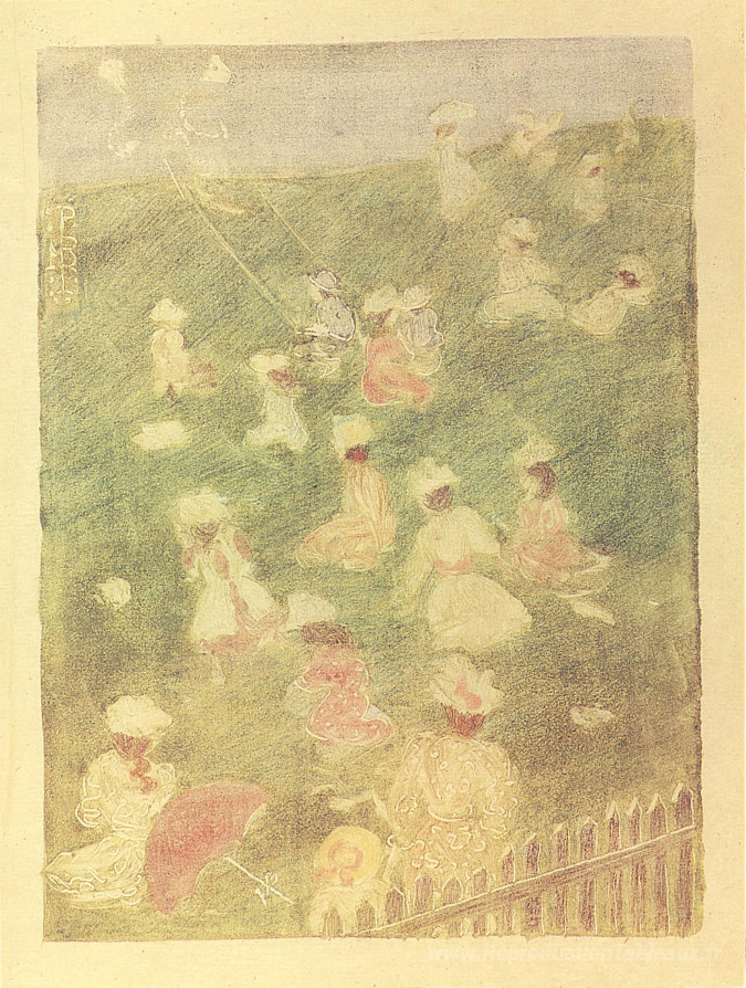 Nous vous proposons une reproduction artisanale sur toile du célèbre tableau 'Enfants en jeu' de Maurice Prendergast, provenant du Musée de la Reproduction.