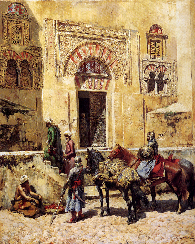 Nous vous proposons une reproduction artisanale sur toile du célèbre tableau 'Entrer dans la mosquée' de Edwin Lord Weeks, provenant du Musée de la Reproduction.