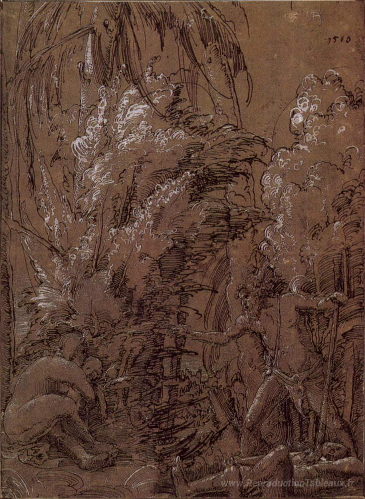 Nous vous proposons une reproduction artisanale sur toile du célèbre tableau 'Famille folklorique sauvage' de Albrecht Altdorfer, provenant du Musée de la Reproduction.