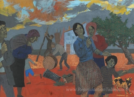 Nous vous proposons une reproduction artisanale sur toile du célèbre tableau 'Famille' de Grégoire Michonze, provenant du Musée de la Reproduction.