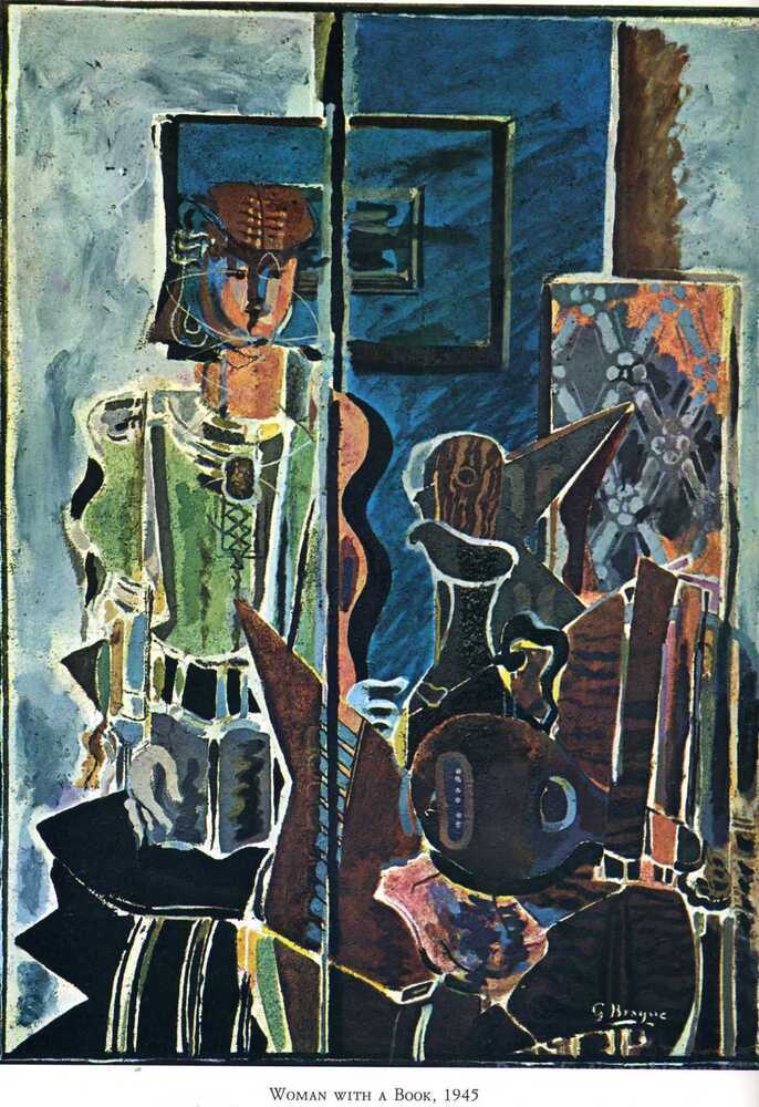 Nous vous proposons une reproduction artisanale sur toile du célèbre tableau 'Femme avec livre' de Georges Braque, provenant du Musée de la Reproduction.