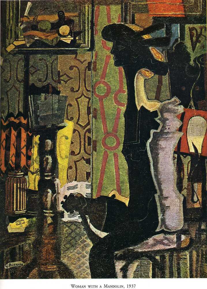 Nous vous proposons une reproduction artisanale sur toile du célèbre tableau 'Femme avec une mandoline' de Georges Braque, provenant du Musée de la Reproduction.