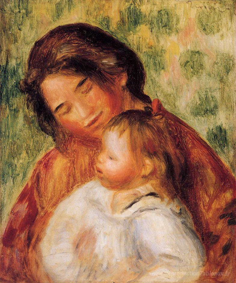 Nous vous proposons une reproduction artisanale sur toile du célèbre tableau 'Femme et enfant' de Pierre-Auguste Renoir, provenant du Musée de la Reproduction.