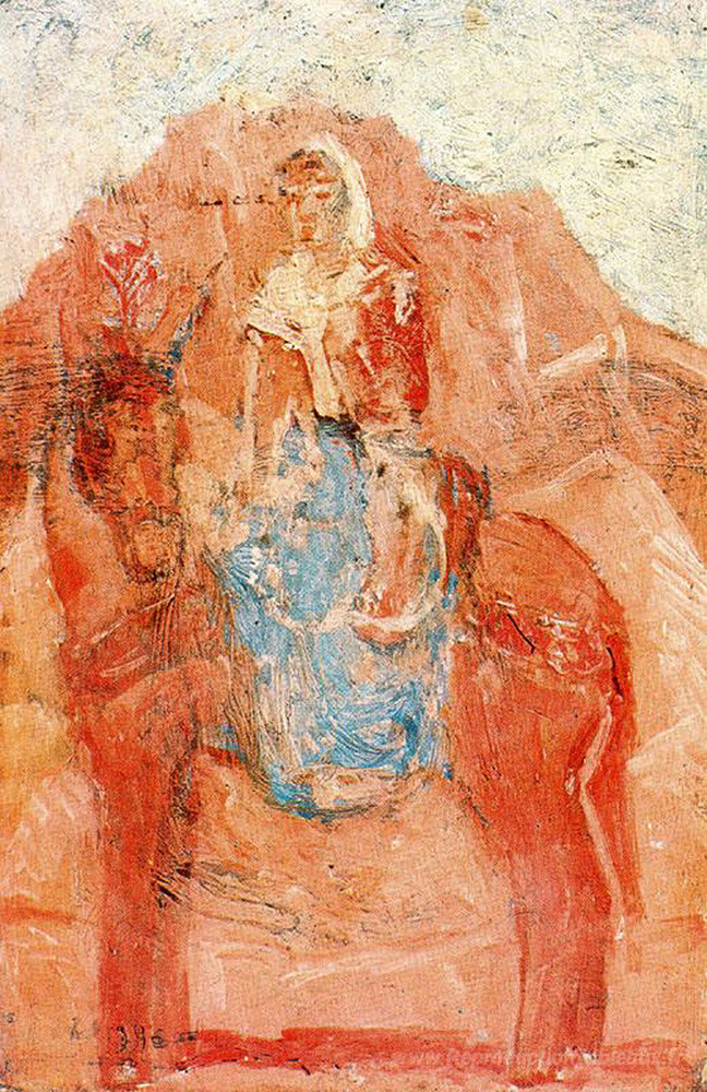 Nous vous proposons une reproduction artisanale sur toile du célèbre tableau 'Femme sur un âne' de Pablo Picasso, provenant du Musée de la Reproduction.