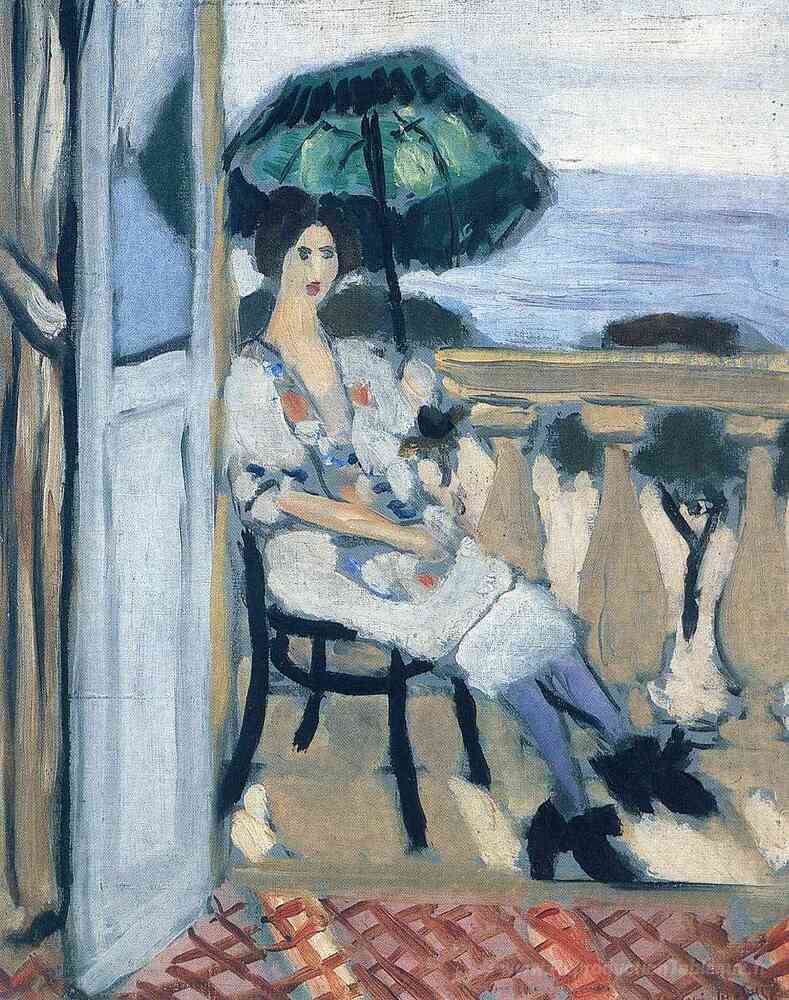 Nous vous proposons une reproduction artisanale sur toile du célèbre tableau 'Femme tenant un parapluie' de Henri Matisse, provenant du Musée de la Reproduction.