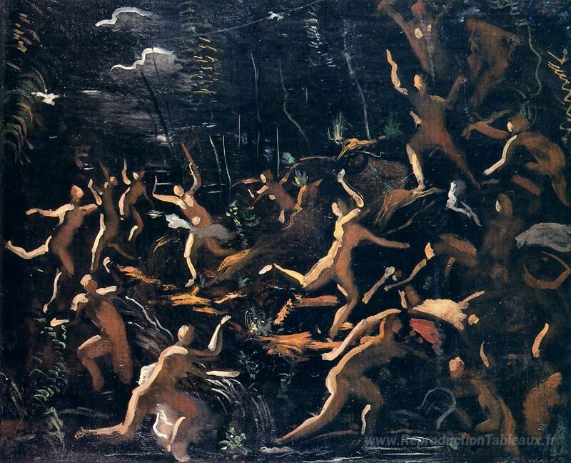 Nous vous proposons une reproduction artisanale sur toile du célèbre tableau 'Femmes orgiastiques' de Andre Derain, provenant du Musée de la Reproduction.