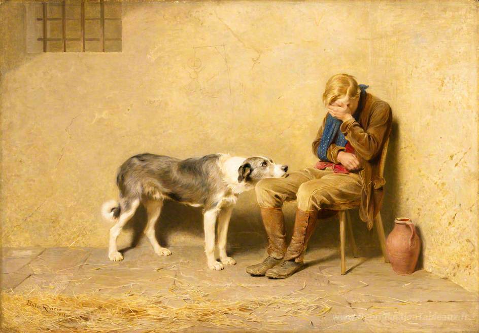 Nous vous proposons une reproduction artisanale sur toile du célèbre tableau 'fidélité' de Briton Riviere, provenant du Musée de la Reproduction.