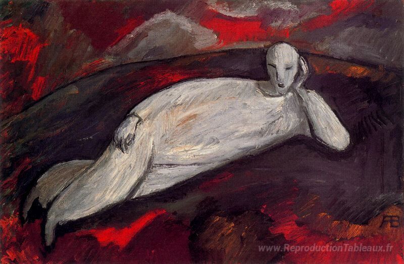 Nous vous proposons une reproduction artisanale sur toile du célèbre tableau 'Figure inclinable' de Albert Bloch, provenant du Musée de la Reproduction.