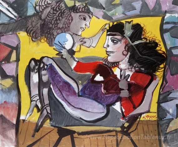 Nous vous proposons une reproduction artisanale sur toile du célèbre tableau 'Figure inclinable' de Dimitris Mytaras, provenant du Musée de la Reproduction.