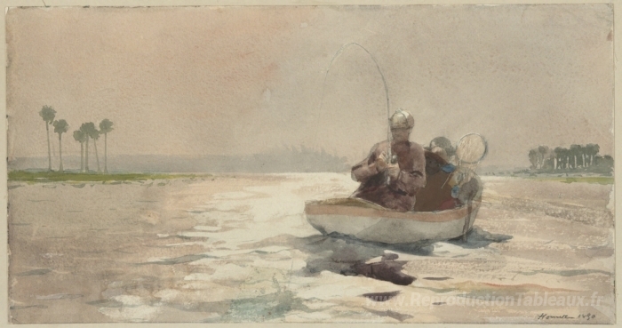 Nous vous proposons une reproduction artisanale sur toile du célèbre tableau 'Fishing Bass, Floride' de Winslow Homer, provenant du Musée de la Reproduction.