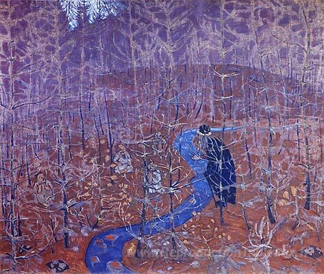 Nous vous proposons une reproduction artisanale sur toile du célèbre tableau 'Forêt' de Nicholas Roerich, provenant du Musée de la Reproduction.