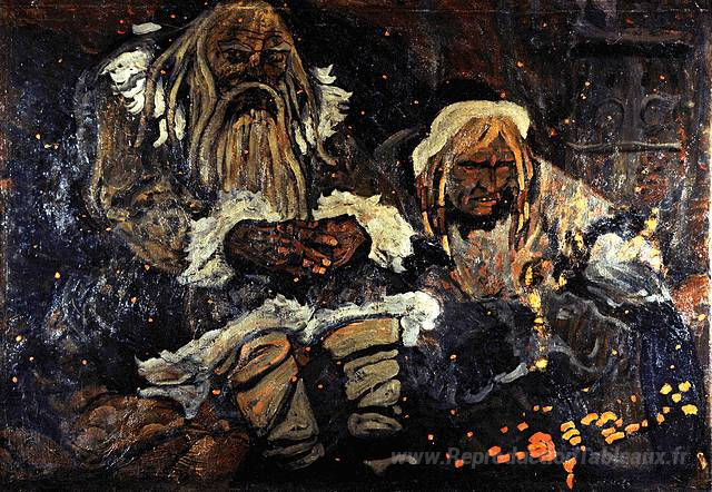 Nous vous proposons une reproduction artisanale sur toile du célèbre tableau 'Foyer' de Nicholas Roerich, provenant du Musée de la Reproduction.