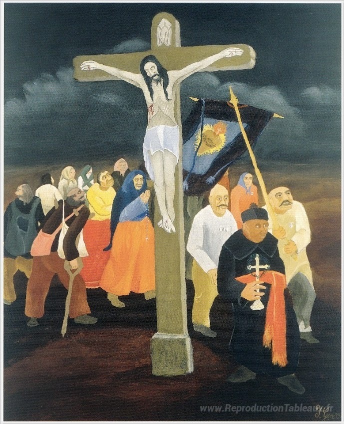 Nous vous proposons une reproduction artisanale sur toile du célèbre tableau 'Funérailles' de Ivan Generalic, provenant du Musée de la Reproduction.