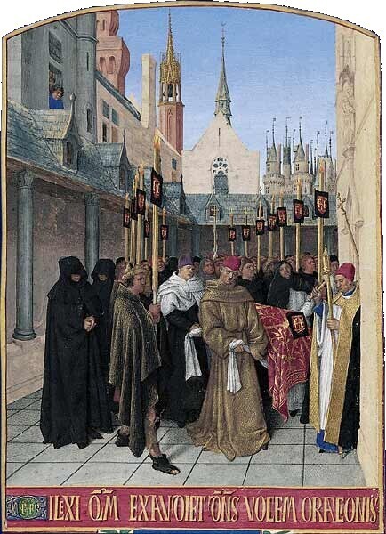 Nous vous proposons une reproduction artisanale sur toile du célèbre tableau 'Funérailles' de Jean Fouquet, provenant du Musée de la Reproduction.