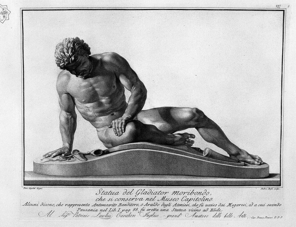 Nous vous proposons une reproduction artisanale sur toile du célèbre tableau 'Gallo en train de mourir' de Giovanni Battista Piranesi, provenant du Musée de la Reproduction.