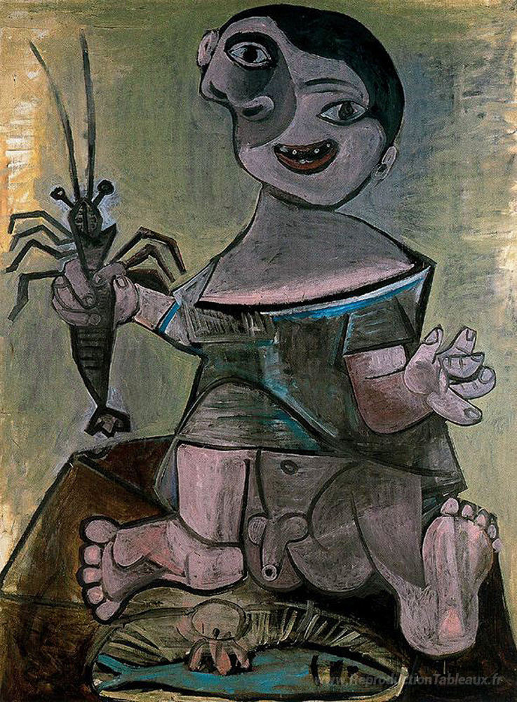 Nous vous proposons une reproduction artisanale sur toile du célèbre tableau 'Garçon avec un langosta' de Pablo Picasso, provenant du Musée de la Reproduction.
