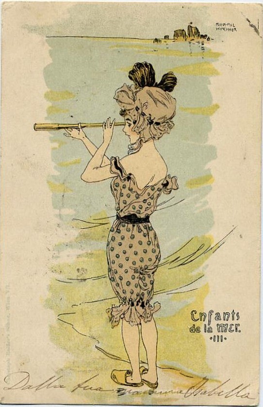 Nous vous proposons une reproduction artisanale sur toile du célèbre tableau 'Garçons et filles en mer' de Raphael Kirchner, provenant du Musée de la Reproduction.
