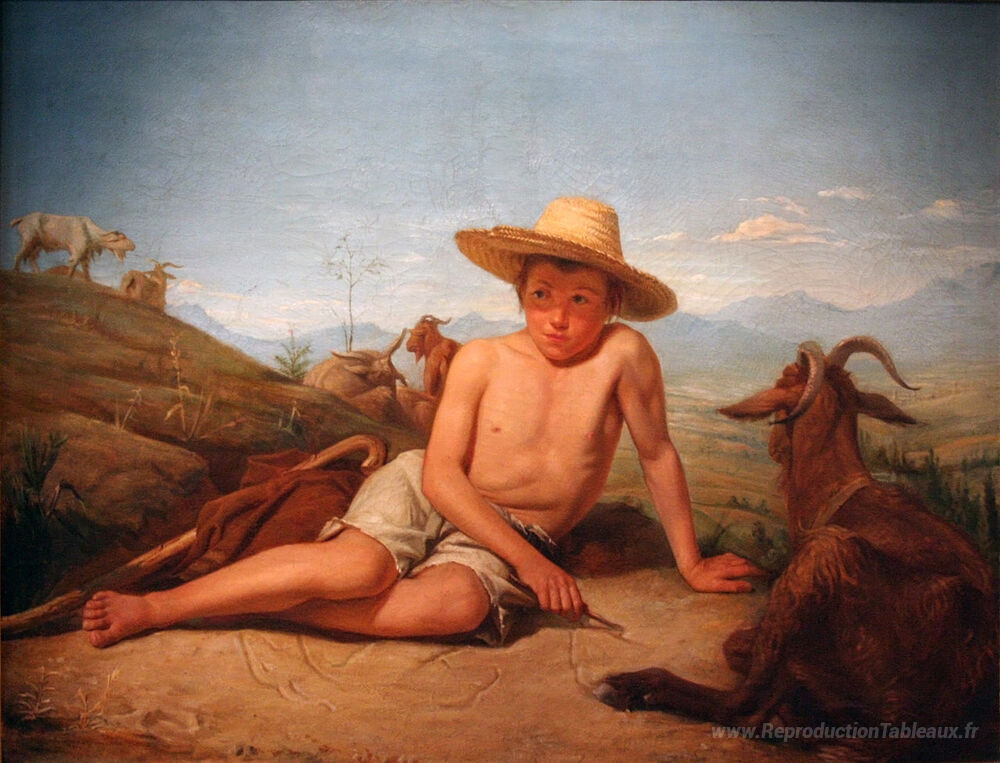 Nous vous proposons une reproduction artisanale sur toile du célèbre tableau 'Giotto Gardant Les Chèves' de Leon Bonnat, provenant du Musée de la Reproduction.