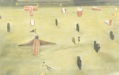 Nous vous proposons une reproduction artisanale sur toile du célèbre tableau 'Grabuge' de Luc Tuymans, provenant du Musée de la Reproduction.