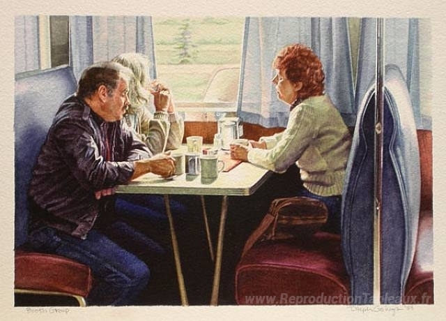 Ses techniques innovantes, alliées à une palette de couleurs soigneusement choisie, invitent à une immersion totale dans ses scènes. Chaque reproduction de Groupe de stands que nous proposons saura ajouter une touche d'élégance et de caractère à votre espace. Que ce soit pour un salon, un bureau ou une salle d'exposition, cette œuvre transformera votre environnement en un lieu d'inspiration et de dialogue. Offrez-vous le plaisir de l'art et laissez-vous séduire par le talent inégalé de Ralph Goings.