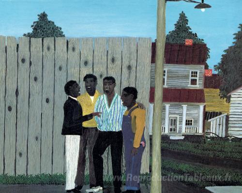 Nous vous proposons une reproduction artisanale sur toile du célèbre tableau 'Harmonisation' de Horace Pippin, provenant du Musée de la Reproduction.