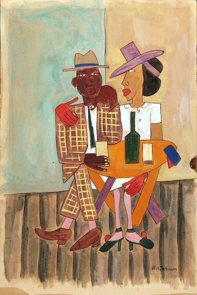 Nous vous proposons une reproduction artisanale sur toile du célèbre tableau 'Haute vie, Harlem' de William H. Johnson, provenant du Musée de la Reproduction.