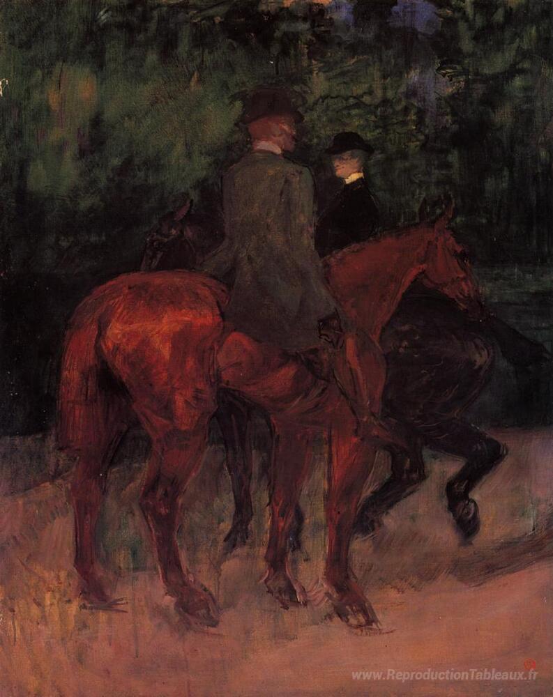 Nous vous proposons une reproduction artisanale sur toile du célèbre tableau 'Homme et femme chevauchant les bois' de Henri de Toulouse-Lautrec, provenant du Musée de la Reproduction.