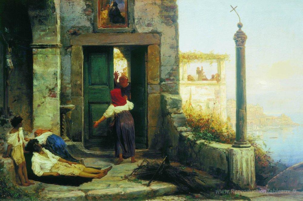 Nous vous proposons une reproduction artisanale sur toile du célèbre tableau 'Homme malade aux murs d'un monastère catholique' de Fyodor Bronnikov, provenant du Musée de la Reproduction.
