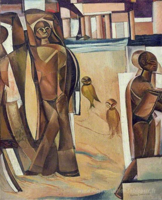 Nous vous proposons une reproduction artisanale sur toile du célèbre tableau 'Inca avec des oiseaux' de Wyndham Lewis, provenant du Musée de la Reproduction.