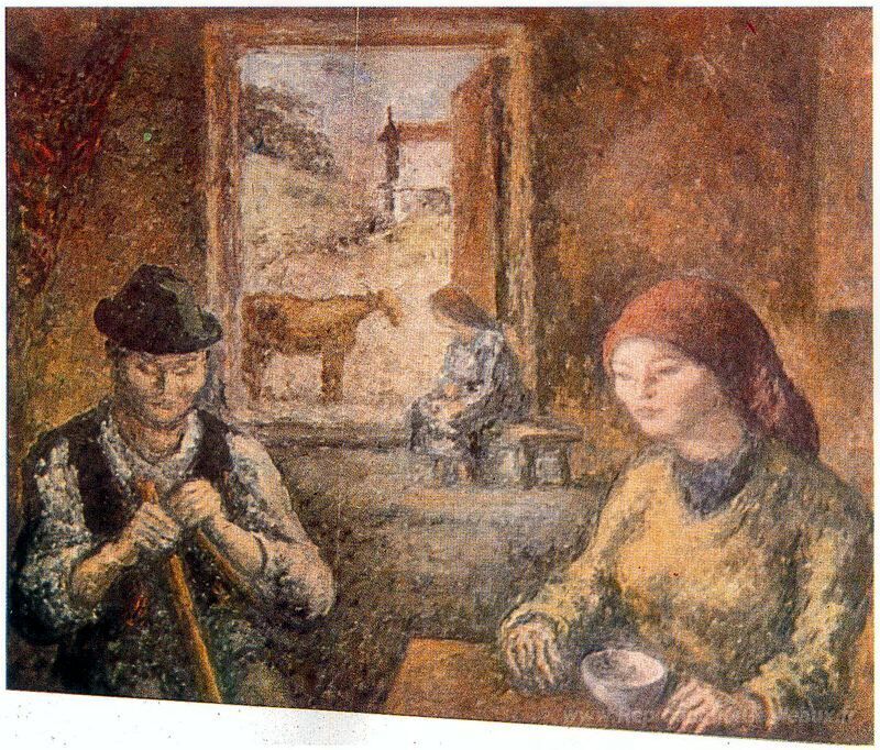 Nous vous proposons une reproduction artisanale sur toile du célèbre tableau 'Intérieur galicien' de Arturo Souto, provenant du Musée de la Reproduction.
