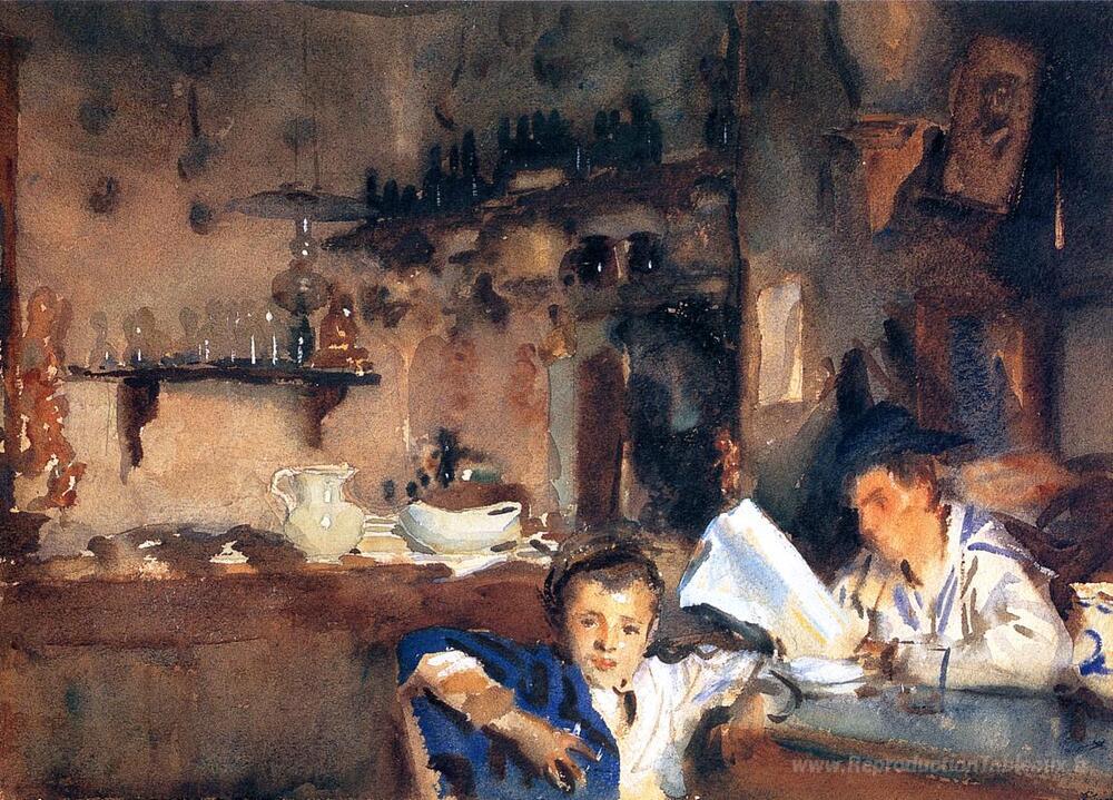 Nous vous proposons une reproduction artisanale sur toile du célèbre tableau 'Intérieur vénitien' de John Singer Sargent, provenant du Musée de la Reproduction.